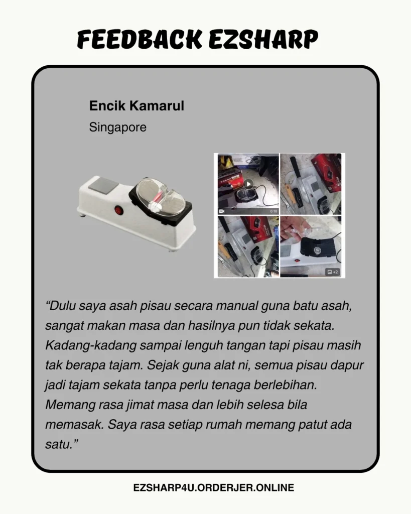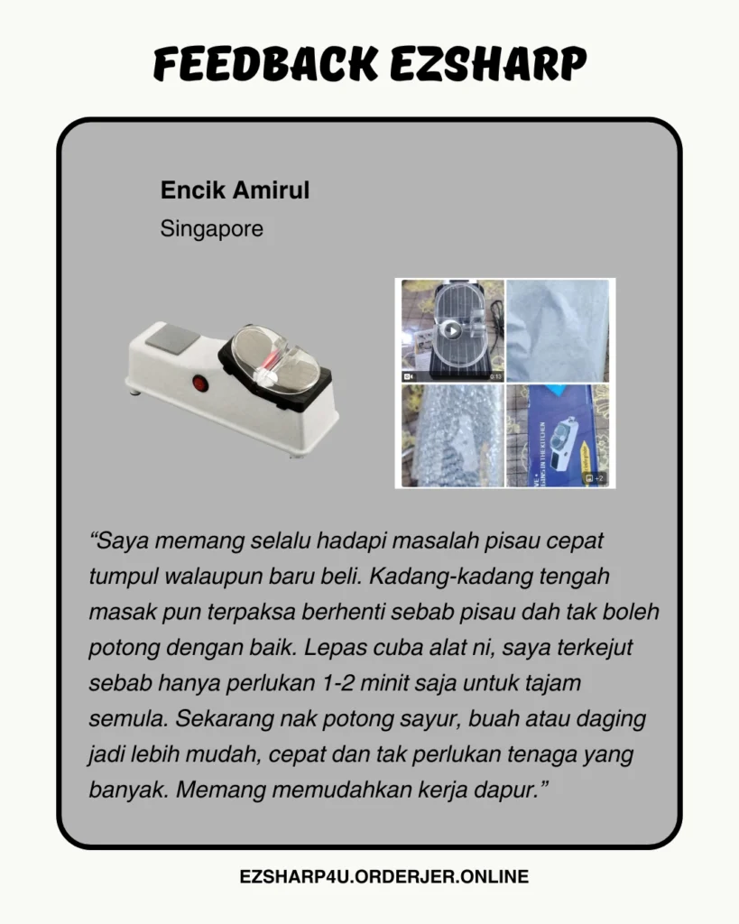 🎯 Klik ‘Order Sekarang’ sebelum harga promosi tamat. Jangan tunggu sampai pisau makin tumpul, potongan makin susah atau risiko cedera di dapur baru nak menyesal…